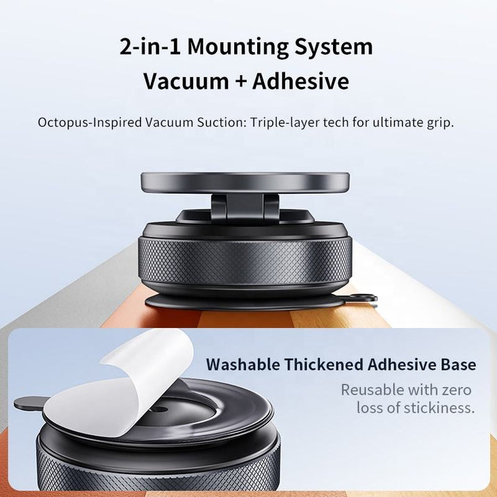 Answer 1: The holder features advanced vacuum suction technology that creates a strong bond with your car's dashboard or windshield. This ensures your phone is held securely in place, even on bumpy roads. It's designed to keep your device from sliding or falling, giving you peace of mind while driving.
